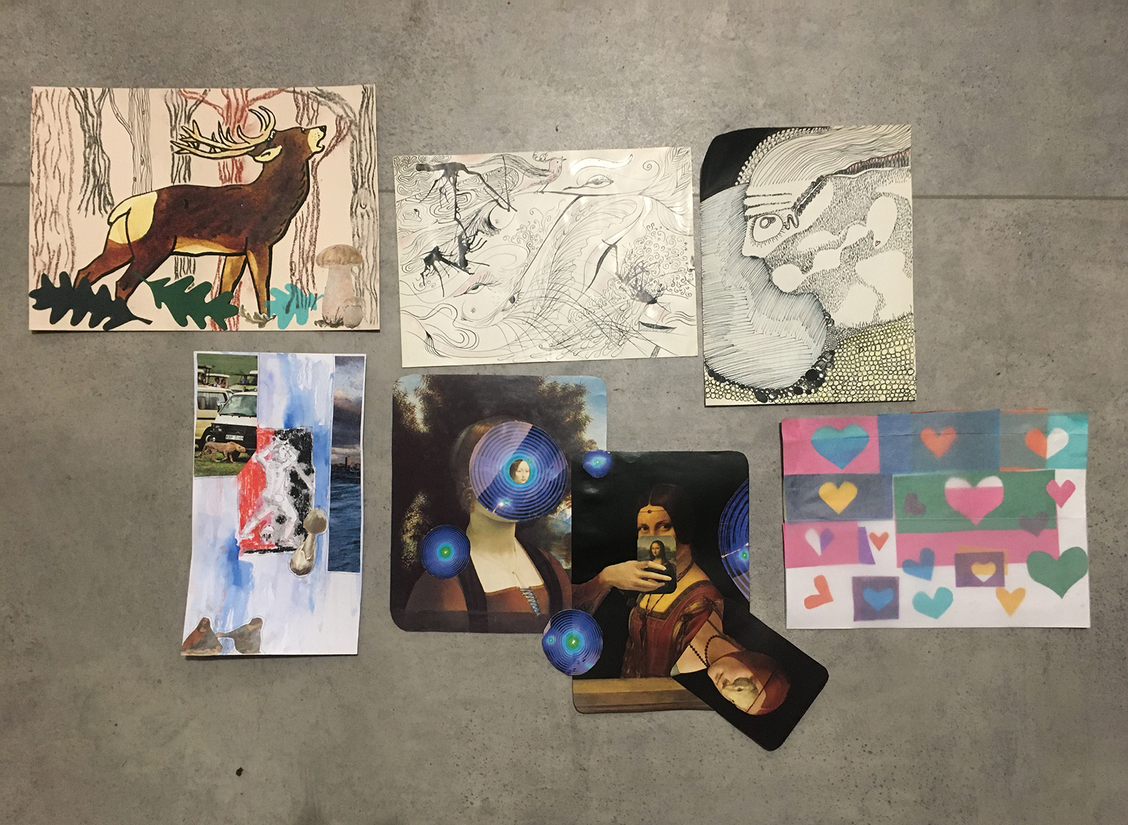 Zadání: Vytáhni si jednu kartu (z vějíře, jako u Černého Petra, karty byly mariášové jednohlavé). Kartu potom zpracuj výtvarně, co ti evokuje, co tě při ní napadá, jak na tebe působí.